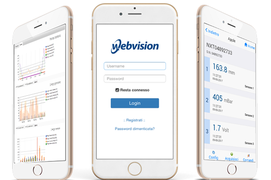 Monitora, telecontrolla e gestisci i dati direttamente dal tuo device mobile con Webvision.